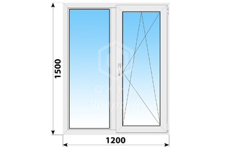 Двухстворчатое пластиковое окно 1200x1500 Г-ПО