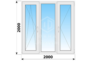 Трехстворчатое пластиковое окно 2000x2000 ПO-Г-П
