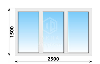 Трехстворчатое пластиковое окно 2500x1500 Г-Г-Г